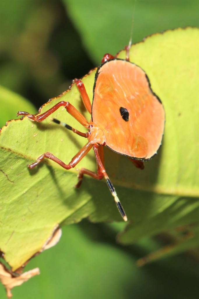 Fun Facts: As with all shield bugs, the Gum Tree Shield nymphs goes through five instar (moult) stages. After each instar moult there is a colour change. In the case of the Gum Tree Shield Bug the instars are more deeply coloured than the adult – displaying colours such as red, orange, black and yellow.