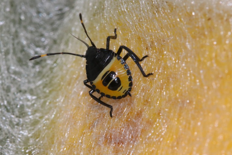 For the April Bug-a-log I decided to attack the true bug, shield bug, family (and one attacked me). They may also, far less nobly, be called stink bugs, because of their ability to squirt foul-smelling liquid. My reports on shield bugs are necessarily incomplete as I didn’t find the nymph forms (except for Bronze Orange Bug). Even if I did, unless I saw the young bugs with the adults I probably wouldn’t be able to give a definitive id. Nymph forms can look very different from the adults and even different stages (instars) of the nymph often look quite different to each other. I saw the shield bug nymph (pictured) on our lemonade tree but I have no idea what, if any, of the shield bugs listed it belongs to. Another lesson to be learned this month was that while single observations don’t lie they don’t tell the whole truth. The Glossy Shield Bug, The Gum tree shield Bug and the Australasian Green Shield Bug, I saw, either exhibited non-typical behaviour or were on non-typical host plants. But I have said it before I love that insect identification and behaviour is full of surprises and unknowns. Also it possibly tells me that bugs that a very rare in my yard probably don’t have a good food source (such as host plant) and don’t breed – they are only casual visitors.
